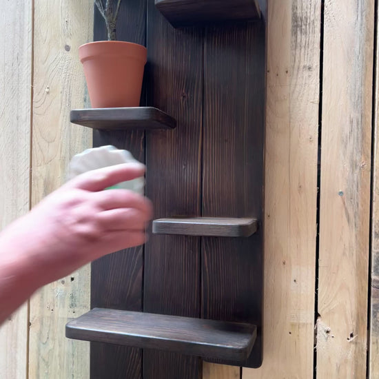 Bring warmth, charm, and function to your space with our handcrafted 4-tier floating shelf, standing 82cm tall and made from beautiful rustic reclaimed wood. Perfect for showcasing decor, storing essentials, or adding character to any room – from kitchens and bathrooms to living spaces.